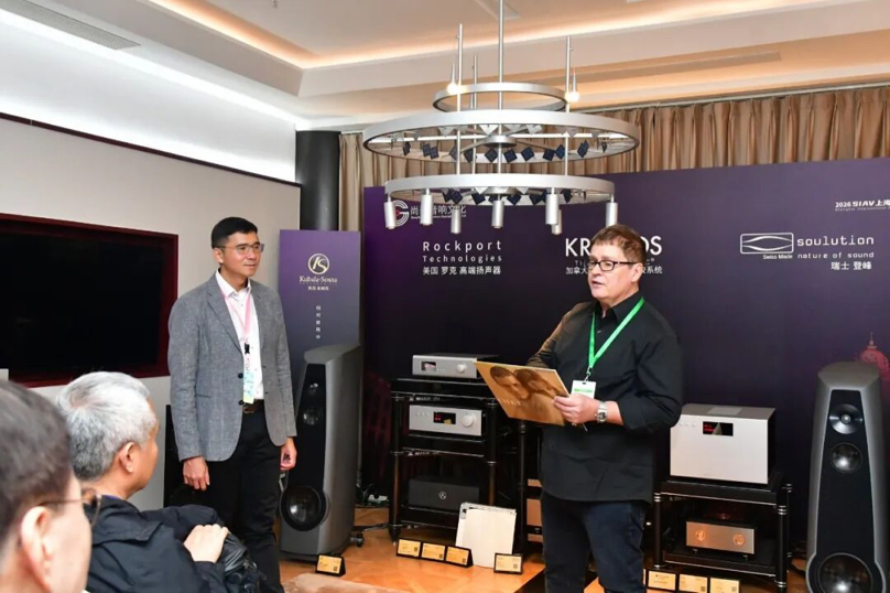 4月10~12日,高端音响代理领域活跃力量——尚韵音响文化(广东)有限公司,携旗下代理的多个国际品牌亮相SIAV 2026(上海国际影音展)。在位于新锦江大酒店3楼的小七孔厅和黄果树厅内,精心搭配两套各具魅力的高端Hi-Fi系统,为现场观众带来多场高水准的音乐演绎。展会首日,加拿大Kronos(克诺斯)品牌CEO Louis Desjardins亲临现场,深入分享有关黑胶唱盘设计哲学与技术创新的内