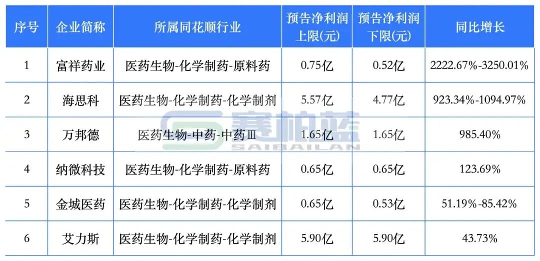 导读:5家大幅上升 截至4月13日,6家A股上市药企2026年第一季度业绩预喜,其中5家为大幅上升,1家为预增。图片来源:赛柏蓝016家药企预喜利润超1000%的2家:富祥药业、海思科富祥药业2026年第一季度归母净利润约在5200万元-7500万元之间,同比增长2222.67%-3250.01%。其业务覆盖医药制造(是全球重要的β-内酰胺酶抑制剂原料药生产基地)、新能源材料(锂电池电解液添加剂)