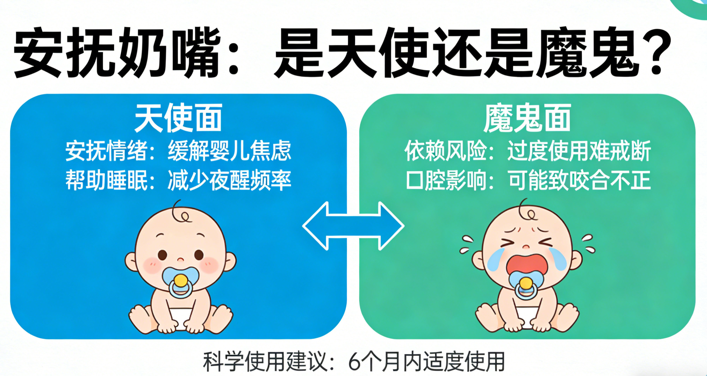 从宝宝出生后不久,安抚奶嘴就成为许多家庭的“育儿神器”,当宝宝哭闹不止、难以安抚时,只需将安抚奶嘴放入口中,宝宝往往能快速平静下来。但与此同时,关于安抚奶嘴的争议从未停止,“用还是不用”“用多久合适”成为家长们纠结的核心问题。事实上,安抚奶嘴本身没有绝对的“好”与“坏”,其作用的发挥,关键在于家长是否掌握科学的使用方法、把握合适的使用时机与戒除时间。正确使用安抚奶嘴能为宝宝带来诸多益处,而不当使用