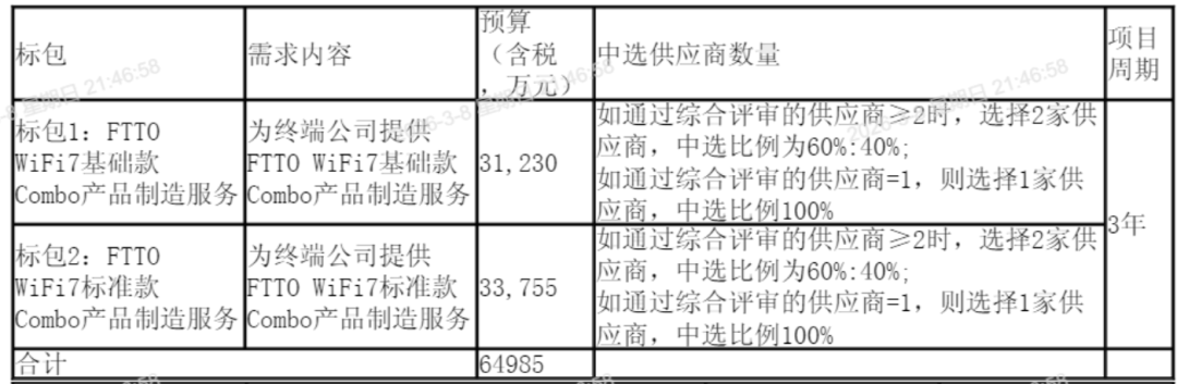2026年3月25日,中国移动采购网发布《中国移动通信集团终端有限公司2026年至2029年深度定制FTTO(全光组网)系列产品采购项目_中选候选人公示》6.49亿元!FTTO设备,3家中标!FTTR-B也就是FTTO,也是主从网关模式,从组网上跟FTTR一样,只是应用场景是面向B端企业客户。面向直播、电商、网吧、宿舍、酒店公区、连锁餐饮、连锁商超、银行营业厅等场所提供全光WiFi组网服务,FTT