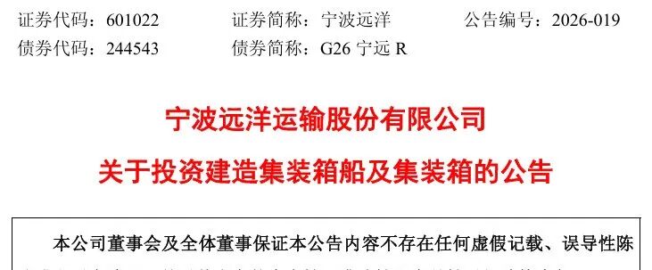 3月31日,宁波远洋运输股份有限公司发布《关于投资建造集装箱船及集装箱的公告》,将斥资不超过17亿元订购至多6艘支线集装箱船。公告披露,宁波远洋或其子公司拟不超过17亿元投资建造4+2艘1900TEU集装箱船、拟不超过10亿元投资建造64500TEU集装箱,项目投资金额均以实际投资建设情况为准。根据公告,上述项目将通过招投标方式择优确定船舶建造厂商和集装箱建造厂商。宁波远洋表示,此次投建船舶及集装