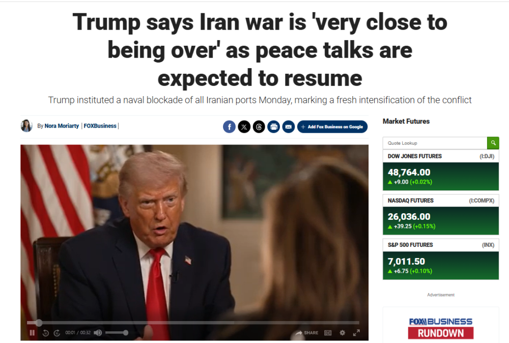 美国总统特朗普14日在接受美国媒体采访时称,伊朗战事已“接近结束”。福克斯新闻频道网页截图特朗普当天接受福克斯新闻频道记者采访。记者问,为什么“你一直在说‘战争结束了’”。特朗普回答说:“我觉得(伊朗战事)已经接近结束了。是的,我是说,我认为已经非常接近结束了。”福克斯新闻频道记者个人社交媒体账号截图美媒:若美伊重返谈判桌 万斯将再次率团据美国有线电视新闻网14日报道,如果美国和伊朗举行第二轮面对