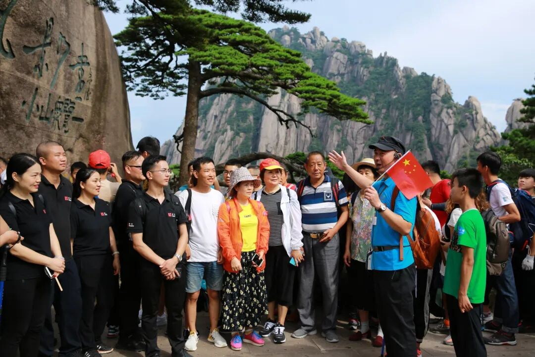 春日黄山,云海翻涌,松涛阵阵。在迎客松前,一位导游为游客讲述着松树扎根绝壁、历经风雪仍向阳生长的故事。他没有照本宣科,没有堆砌辞藻,只是用一种近乎拉家常的语气,将松的生命力化作治愈的力量。这位导游就是黄山迎客松旅行服务有限公司劳模创新工作室领衔人程巍。前不久,他获评“全国特级导游”,成为安徽省首位且唯一获此殊荣的从业者。程巍为游客讲解● 在一次次带团中不断成长1994年入行,程巍选择导游这个职业的