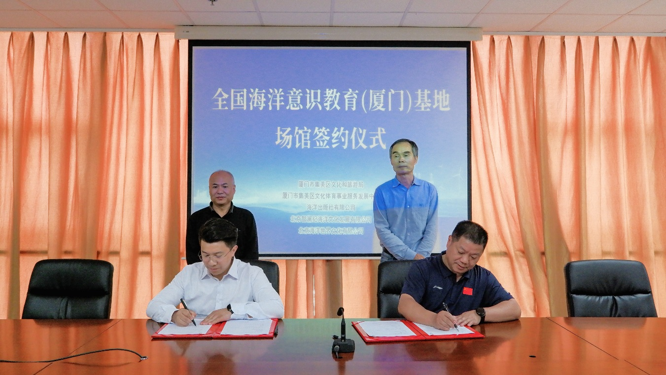 2026年4月10日,全国海洋意识教育(厦门)基地场馆签约仪式在厦门市集美区举行。厦门市集美区文化和旅游局、厦门市集美区文化体育事业服务发展中心、海洋出版社有限公司、北京智澜纪海洋文化发展有限公司、北京海洋世界文化有限公司多方代表共同出席并签署合作协议。图为签约仪式现场 合作场馆位于厦门市集美区兑英东路7号,总用地面积5169.97㎡,总建筑面积11383.96㎡,将作为全国海洋意识教育(厦门)基