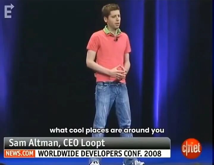 STORY2008 年 6 月,苹果在旧金山的 WWDC 大会上发布了 App Store。这个发布会后来被认为是移动互联网时代的起点乔布斯介绍完 iPhone OS 2.0 之后,请了几位开发者上台演示。一个 23 岁的年轻人走上去,他叫山姆·奥特曼,斯坦福大学辍学生。他做了一个叫 Loopt 的应用,可以在手机地图上看到你朋友在哪里2008 年 WWDC,23 岁的奥特曼在台上演示 Loopt