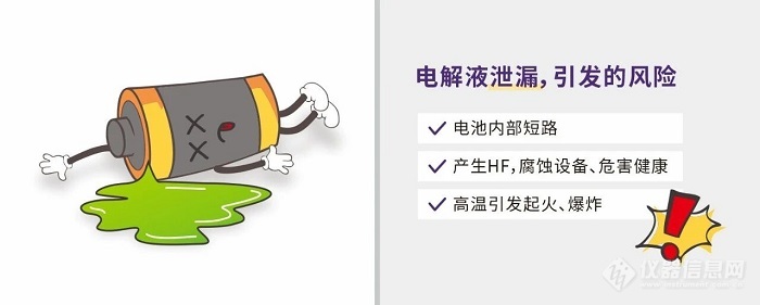 众所周知,电解液作为电池中的"血液",承担离子传导的重要使命;同时,电解液也是潜伏的危险源。其主要由有机溶剂(如EC、DMC等)和锂盐组成,一旦发生泄漏,会引发多重风险:短路:泄漏的电解液在电池内部“拉帮结派”、形成新的导电路径,可能引发外部短路;腐蚀:锂盐(如LiPF₆)遇水则化身“化学杀手”,产生HF气体(腐蚀、剧毒),损害设备甚至危害人员健康;燃烧:遇明火或高温,电解液易被点燃,并在热失控链