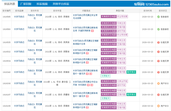 快科技3月23日消息,第三方汽车投诉平台车质网显示,最近7天,长安马自达3昂克赛拉遭到车主们的集体投诉,投诉原因普遍为“空调膨胀阀垫片”生锈,涉及车型多为2020款-2023款车型。 一位2023款的投诉车主介绍,因为空调膨胀阀垫片生锈严重,联系4S店后被告知,再过半个月联系他,但之后联系过两次,4S店方面均说没有配件到货,需要等通知。 另有投诉车主称,车辆在正常使用无涉水的情况下,空调膨胀阀部位