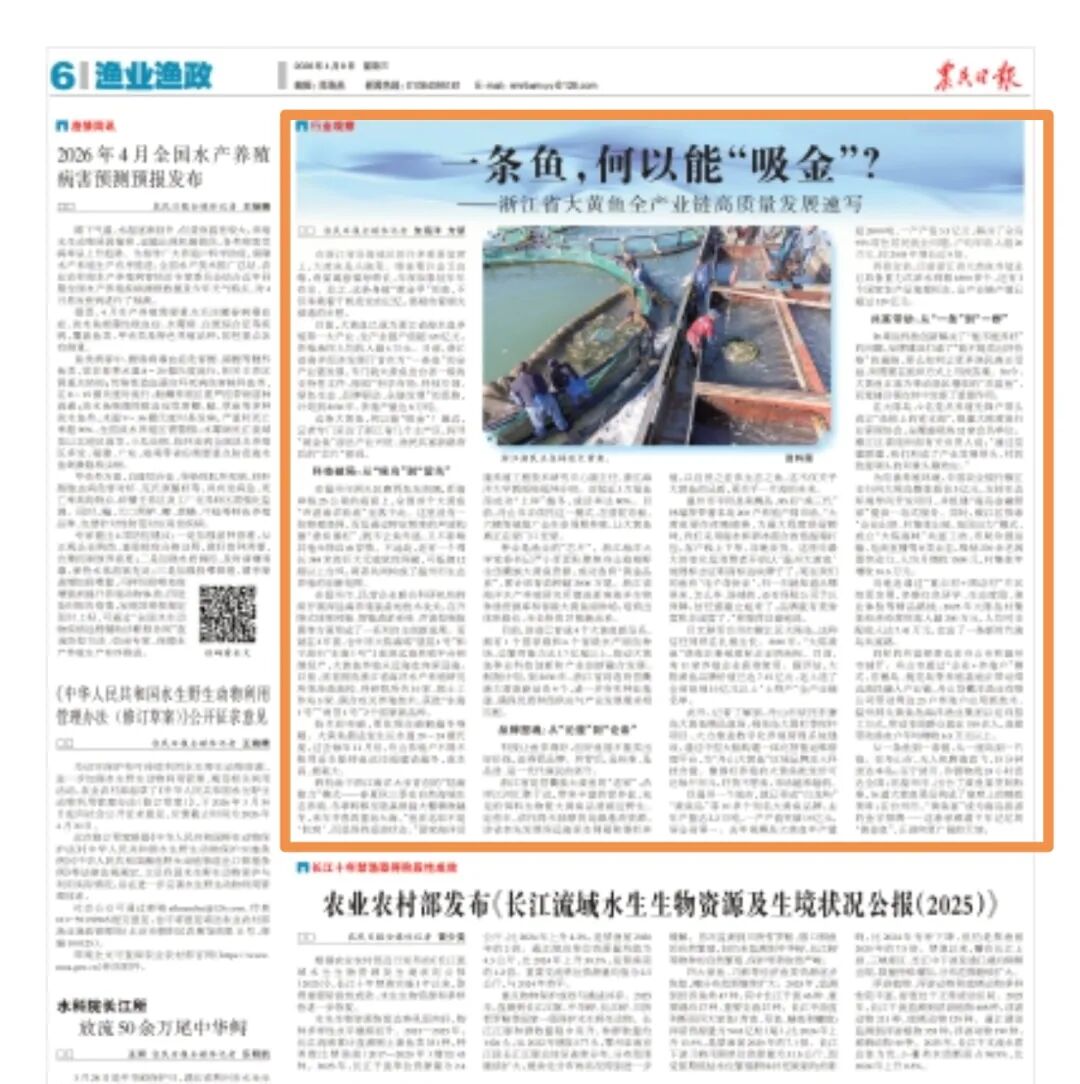 在浙江省沿海地区的许多重要宴席上,大黄鱼是头碗菜。婚宴期许金玉良缘,寿宴寓意福寿绵长,年夜饭象征年年有余。总之,这条身披“黄金甲”的鱼,不仅承载着千帆竞发的记忆,更凝结着烟火浸透的乡愁。 目前,大黄鱼已成为浙江省海水鱼养殖第一大产业,全产业链产值超120亿元,养殖渔民人均收入超6万元。日前,浙江省海洋经济发展厅首次为“一条鱼”的全产业链发展,专门就大黄鱼出台省一级的支持性文件,按照“科学布局、科技