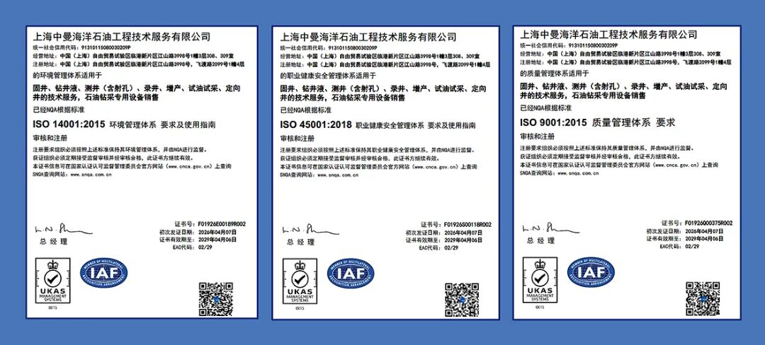 4月7日,中曼油服海洋公司正式取得环境、质量、职业健康安全管理体系三项认证证书,认证范围覆盖固井、钻井液、测井、录井、增产、试油试采、定向井技术服务及石油钻采设备销售等业务板块,标志着公司在标准化、规范化管理上再次迈上新台阶。 今年2月下旬,审核组赴上海及新疆温宿一线作业现场开展审核,通过文件审查、现场访谈、全流程追溯等多种方式,对公司三体系的建立、运行及持续改进情况开展严苛核查。最终,审核组一致