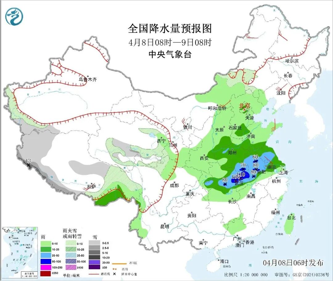 昨日(4月7日)广东、福建、江西等地出现暴雨、局地大暴雨青海和西藏的部分地区出现小到中雪或雨夹雪西北地区、青藏高原及内蒙古等地阵风较大↓↓↓中央气象台预计4月8至10日江汉、江淮、江南北部及重庆等地的部分地区有中到大雨,局地暴雨或大暴雨并伴有短时强降水雷暴大风或冰雹等强对流天气中央气象台今晨同时发布了暴雨蓝色预警和强对流天气蓝色预警预计今天白天到夜间,湖北南部和东部、安徽中北部、河南东南部、江苏中