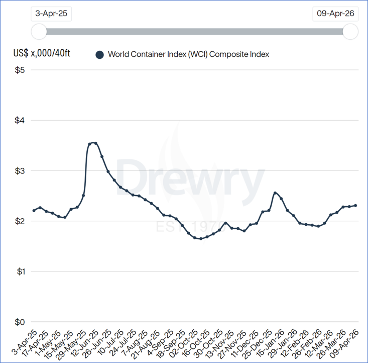 航运界网消息,集运市场受到地缘局势持续的影响,即期运价走势分化。具体而言,截至4月10日,上海出口集装箱综合运价指数(SCFI)为1890.77点,较上期涨1.9%。其中,欧洲航线,运输需求缺乏进一步增长的动能,即期市场订舱价格小幅下跌。4月10日,上海港出口至欧洲基本港市场运价(海运及海运附加费)为1547美元/TEU,较上期下跌6.2%。上海港出口至地中海基本港市场运价(海运及海运附加费)为2