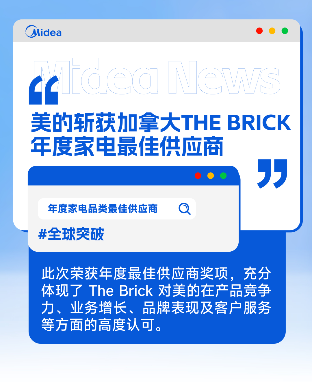 美的斩获加拿大The Brick年度家电最佳供应商