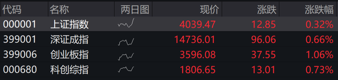 2026.04.15本文字数:408,阅读时长大约1分钟作者 | 一财阿驴4月15日,A股四大指数集体高开,上证指数涨0.32%,深证成指涨0.66%,创业板指涨1.06%创10年多新高,科创综指涨0.73%。盘面上,存储器、超硬材料、算力硬件、能源金属、黄金、创新药、AI应用、半导体概念股走强,油气股回调。市场逾3700股上涨。具体来看,量子科技概念股高开,神州信息涨停,纬德信息涨超10%,格尔
