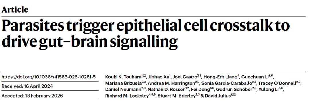 经历过严重肠胃炎的人或许会有这样的体会:明明急性症状已经缓解,却依然对食物提不起兴趣,食欲迟迟无法恢复。此外,对于感染了慢性寄生虫的患者,这种长期食欲不振更是非常常见的疾病症状。肠道遇到状况后,究竟是如何“说服”大脑抑制食欲的?今日,加州大学旧金山分校的研究团队在《自然》杂志上发表的一项研究,终于为这一问题带来了新的解释。他们发现,感染期间两类肠道细胞会互相作用,通过迷走神经影响大脑行为。研究认为
