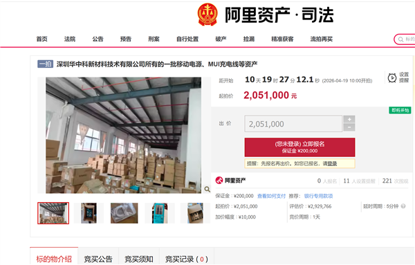 快科技4月8日消息,近日,一批积压在仓库里的罗马仕充电宝和充电线,正被法院“摆上货架”。 阿里资产司法拍卖平台显示,深圳华中科新材料技术有限公司名下的一批充电宝、充电线等资产,将于4月19日开拍,起拍价205.1万元。 该公司的大股东为深圳罗马仕科技有限公司,被拍卖的充电宝等资产均为罗马仕品牌。 公告显示,此次拍卖标的物包括,147478根MUI充电线,评估价约131.4万元;20560只移动电源