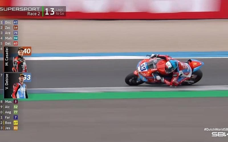 4月19日,在世界超级摩托车锦标赛(WSBK)2026荷兰站第二回合正赛中,因比赛突然插上红旗,提前结束,中国摩托车品牌张雪机车的53号车手瓦伦丁·德比斯驾驶820RR-RS,夺得第七名成绩。赛事直播解说称,因有选手摔车,比赛提前终止,救护车需上场救人。张雪机车53号车手第七名4月19日的阿森纳赛道,天下着小雨。直播解说员说,目前所有车手只有干燥路面的数据,由于出现了小雨,需要看车手的现场表现。开