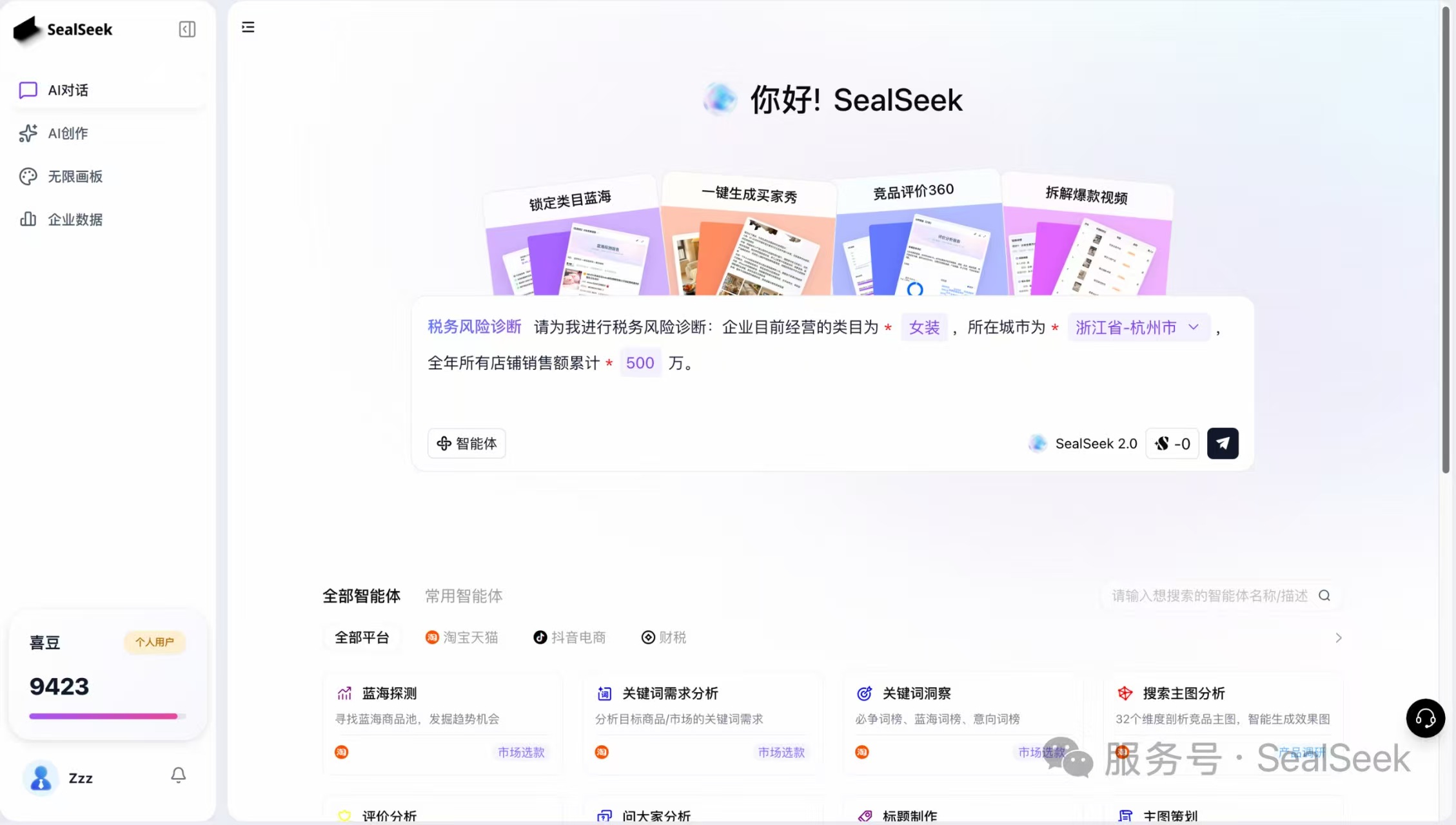 在金税四期全面落地、以数治税走向深度穿透的当下,电商行业正迎来监管透明化、数据一体化的全新经营环境。平台交易、资金流水、发票信息、物流轨迹全域打通,传统事后补救、经验式风控已无法应对精准稽查,主动合规、智能风控成为电商企业生存与发展的核心基准。 作为打通电商经营全链路的数智化系统,玺承 SealSeek 正式发布【税务风险诊断智能体】,以AI技术重构税务风控逻辑,将企业税务管理从被动应对升级为主动