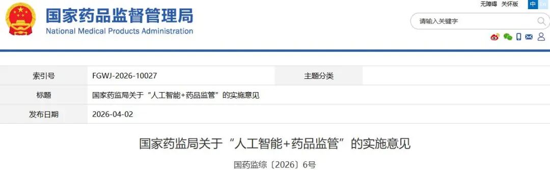 各省、自治区、直辖市和新疆生产建设兵团药品监督管理局,局机关各司局、各直属单位:药品智慧监管行动计划实施以来,各级药品监管部门积极探索利用信息化手段提升药品监管能力,初步构建了全国一体化药品智慧监管体系。当前,人工智能等新一代信息技术的快速发展与迭代演进,为智慧监管提供新手段、注入新动能。为贯彻落实《国务院关于深入实施“人工智能+”行动的意见》《国务院办公厅关于全面深化药品医疗器械监管改革促进医药