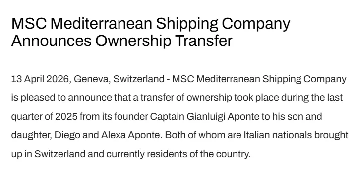 总部位于瑞士日内瓦的全球最大航运集团——地中海航运公司(MSC)13日宣布,其所有权已由创始人Gianluigi Aponte转让给其子女。2026年造船焊接切割和智造工艺上海会议将于6月11-12日上交会期间举办船东船厂对接会,全球最大造船航运展览德国SMM批准船舶海工网举办4月20-28日新加坡船东船厂投资展会,新版中国造船地图将赠送2026年开局,特大版中国造船厂地图以700多家精锐船厂排列