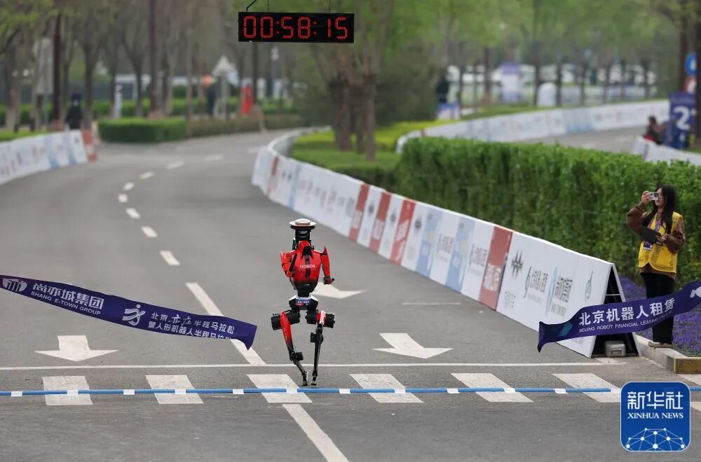 机器人跑得更快,然后呢?作者|刘杨楠编辑|王博4月19日,2026北京亦庄人形机器人半程马拉松正式开跑。三百余台机器人从通明湖畔出发,沿科创十七街、泡桐大道、文博大桥一路向南,21公里的城市开放赛道上,人和机器隔着铁栏并排开跑。发令枪响不到一个小时,终点区便迎来首位冲线机器人跑者——荣耀“绝影赤兔队”的“闪电”。然而,冲线前最后一刻发生了戏剧性一幕。“绝影赤兔队”的遥控机器人在临近终点时意外跌倒,