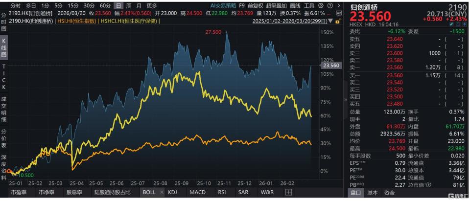 当外部市场充满不确定性时,充满确定性的成绩单,往往最受青睐。那么,谁在认真答题?资本市场率先用脚投票。作为港股18A中率先“摘B”的高值耗材企业之一,归创通桥自2025年初至今,累计涨幅超100%,大幅跑赢恒生指数与恒生医疗保健指数。这一涨幅背后,是对公司在集采常态化背景下仍能实现高质量增长的预期兑现,也是市场对归创通桥未来“创新+国际化”双轮驱动逻辑的认可。市场的热情并非空穴来风。近日,公司交出