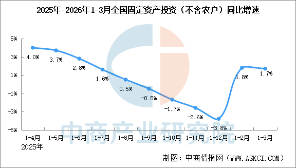 中商情报网讯:1—3月份,全国固定资产投资(不含农户)102708亿元,同比增长1.7%(按可比口径计算,详见附注7)。其中,民间固定资产投资同比下降2.2%。从环比看,3月份固定资产投资(不含农户)增长0.52%。 数据来源:中商产业研究院数据库 分产业看,第一产业投资2334亿元,同比增长15.9%;第二产业投资36765亿元,增长5.8%;第三产业投资63608亿元,下降1.0%。 工业投资