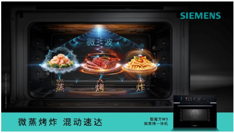 当下,中国家庭的厨房早已不再只是简单的烹饪区,更慢慢成为品质生活的核心空间。有限的空间、多元的烹饪需求与对效率的追求,催生了集成化厨电的持续升级。市场数据显示,具备微波功能的蒸烤一体机近年来保持高速增长,成为嵌入式厨电领域最具潜力的品类之一。西门子家电敏锐捕捉这一趋势,于百年蒸烤之际,正式推出全新智魔方W5微蒸烤一体机,以“智能混动烹饪”技术为核心,集微、蒸、烤、炸四大功能于一体,旨在用科技重新定