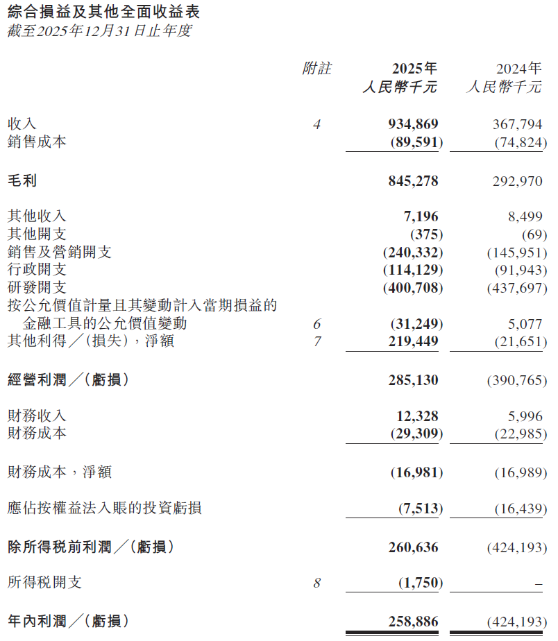 ▎Armstrong2026年3月25日,乐普生物发布2025年财报,全年收入9.35亿元,为2024年的2.5倍左右,2025年首次实现扭亏为盈,股东应占正面盈利2.61亿元。2025年,乐普生物能够实现扭亏为盈,来自于商业化与创新药BD的全面突破。商业化方面,乐普生物2025年销售收入5.01亿元,同比增长66.8%。全球首创EGFR ADC新药维贝柯妥塔单抗已于2025年10月获批上市,将为