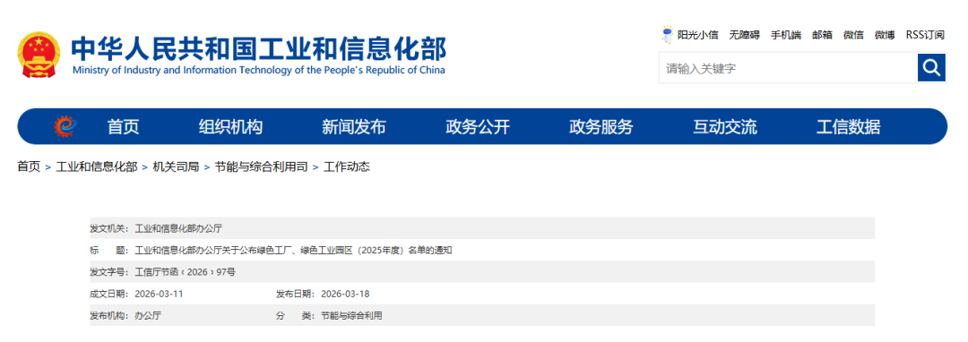 近日,工业和信息化部印发《工业和信息化部办公厅关于公布绿色工厂、绿色工业园区(2025年度)名单的通知》。2025年度绿色工厂、绿色工业园区名单总体情况经企业和园区自愿申报、省级工业和信息化主管部门推荐以及专家审核、公示等程序,确定2025年度名单,包括绿色工厂2038家、绿色工业园区128家。同时,按照《绿色工厂梯度培育及管理暂行办法》有关要求,组织各省级工信部门每年对已发布绿色工厂、绿色工业园