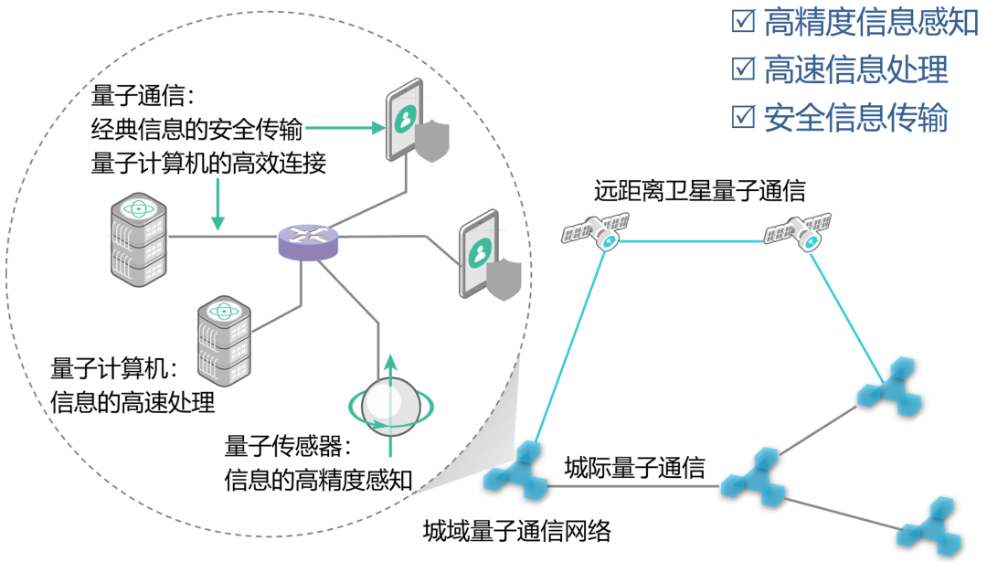 “展望未来,量子信息科学的下一阶段将包括对容错量子计算机、新型量子算法,以及由卫星和量子中继器支撑的远距离量子通信的持续探索。隐形传态、纠缠交换与纠缠纯化——这些曾经被视为抽象理论构想的概念——如今正逐步成为实用量子工程体系的核心组成部分。”美国计算机协会(ACM)评价道[1]。量子信息科学的终极发展目标是构建高效、安全的量子网络:利用量子精密测量实现对信息的高精度感知、利用量子通信实现信息的安全和高效传输、利用量子计算实现信息的指数级加速处理,从而实现对物质世界认知能力的革命性飞跃。构建量子网络的基本要素正是量子密钥分发、量子隐形传态,以及支撑它们能够远距离传输的纠缠纯化等。