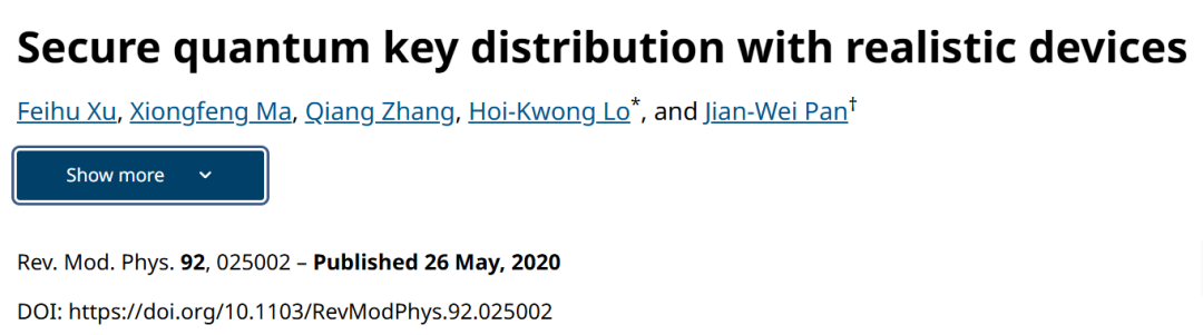 [19]. F. Xu, X. Ma, Q. Zhang, et al. Secure quantum key distribution with realistic devices, Reviews of Modern Physics 92, 025002 (2020).