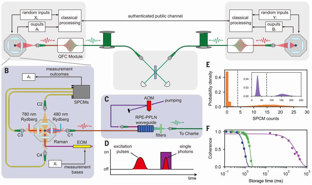 利用长寿命量子存储首次将DI-QKD的传输距离突破百公里