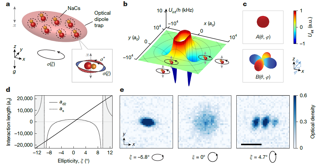 在确保分子气体具有足够数量后,研究团队对钠铯分子气体实施了强制蒸发冷却。实验将分子束缚在由激光构建的交叉光学偶极阱中,通过连续降低光阱的势垒深度,持续移除系统中动能较高的分子,剩余的分子在势阱中重新热化,使得分子气体的整体平均动能显著下降。经过蒸发冷却,大约1500个钠铯分子的温度被成功降低至十纳开尔文以下。在这个温度区间,分子气体形成了弱相互作用的分子玻色爱因斯坦凝聚体。之后,研究人员进一步利用微波场对系统内部的相互作用进行精确调控。他们在维持原有碰撞屏蔽排斥势的同时,通过引入另一个偏振的微波场,在分子间诱导出了电偶极相互作用。通过改变分子感受到的微波场椭圆率,研究人员不仅能够连续调节偶极相互作用的强度,还能够控制相互作用的空间各向异性,从而在凝聚体内部建立起通过微波参数实时可调的长程相互作用体系。