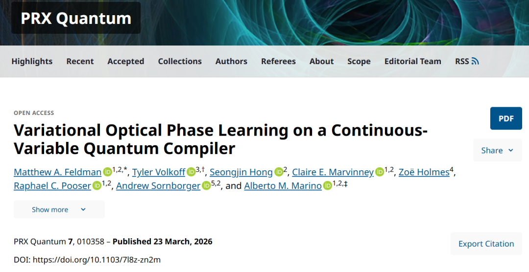 美国橡树岭国家实验室等学习关于连续变量量子编译器上的变分光相位