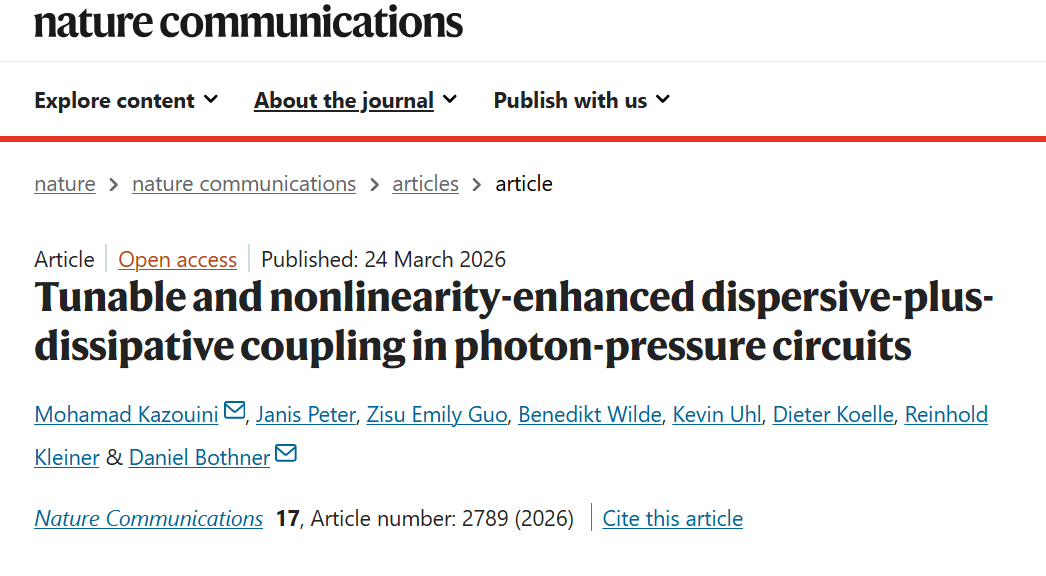 德国图宾根大学实现光压电路中可调谐且非线性增强的色散加耗散耦合