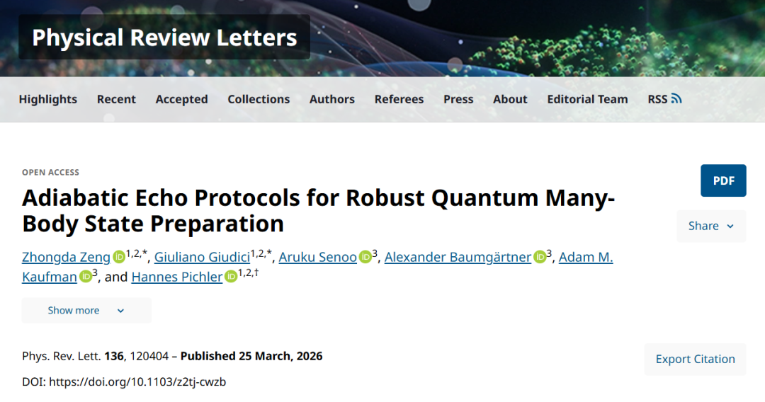 本研究提出了一种通用的“绝热回波协议”,旨在通过动态构建的破坏性干涉来抑制静态扰动的影响。通过量子最优控制方法,研究证明该协议能在伊辛自旋链、二维里德堡原子阵列中自然产生,并成功应用于制备GHZ态以及受挫里德堡晶格中的量子自旋液体态,为当前主流量子硬件平台提供了实现可靠多体态制备的实用框架。研究成果于3月25日发表于《Physical Review Letters》(物理评论快报)。