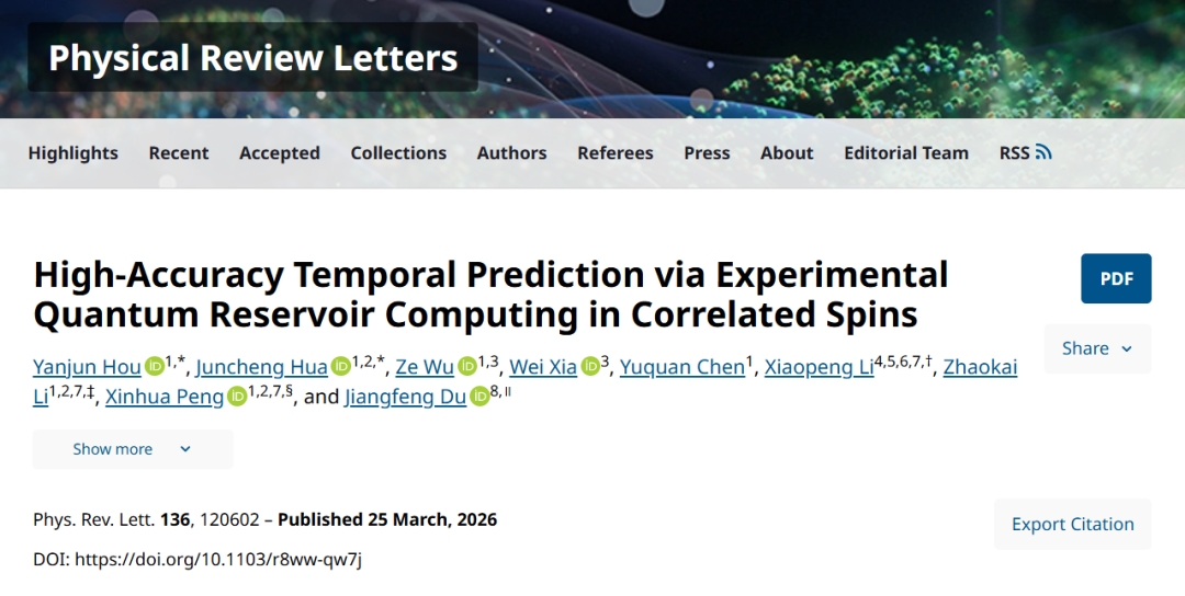 本研究基于关联量子自旋系统,实验实现新型量子储层计算,利用天然多体相互作用生成动力学,规避深度量子电路挑战。实验支持非平凡量子纠缠,在时序预测任务中,将预测误差较此前量子储层实验降低1-2个数量级;在长期天气预报中,9自旋量子储层精度超越含数千节点的经典储层,首次实验证明量子机器学习在真实世界任务中可超越大规模经典模型,为量子机器学习实用化奠定基础。研究成果于3月25日发表于《Physical Review Letters》(物理评论快报)。