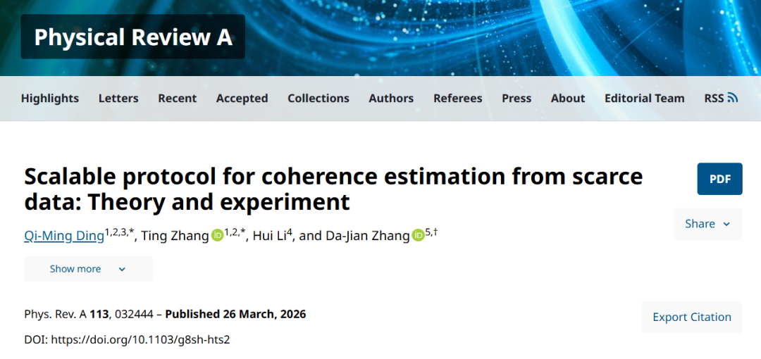 本研究提出可扩展相干性估计协议,将NP难问题转化为高效优化问题,使计算成本对系统规模不敏感,突破传统方法指数级增长瓶颈。实验验证了协议在稀缺数据下的实用性,为大规模量子系统相干性诊断提供了高效工具。该成果支撑量子计算、传感等技术的性能评估与优化,推动量子资源量化在NISQ时代的实用化。研究成果于3月26日发表于《Physical Review A》(物理评论A)。