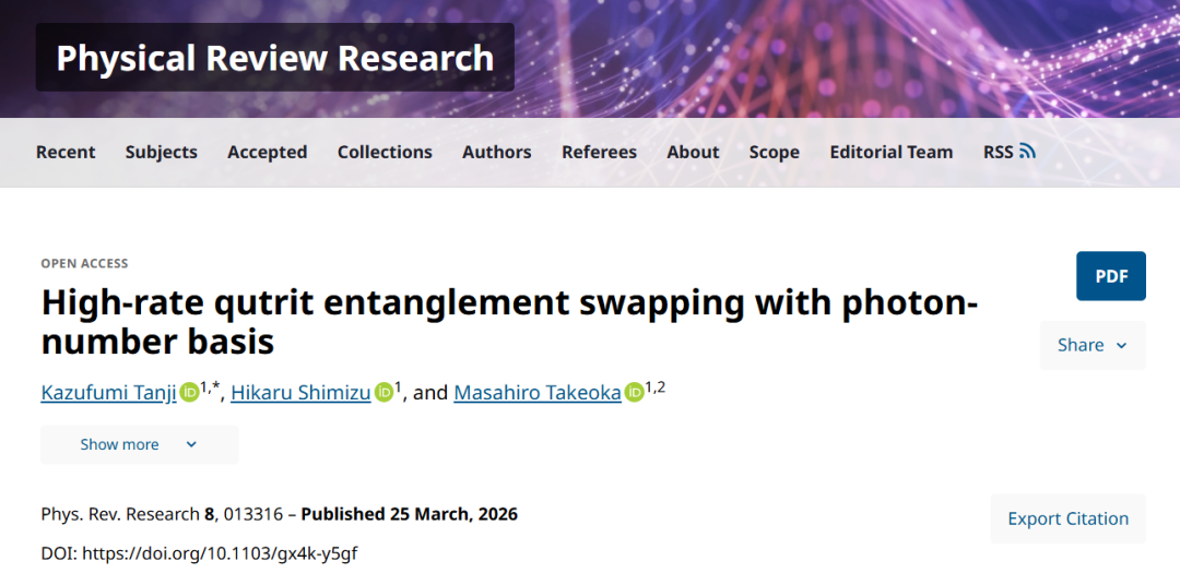 本研究针对分布式量子信息处理中远程节点纠缠生成的关键难题,提出了一种专为三级量子比特设计的纠缠交换协议。由于传统高维量子态在使用贝尔测量进行纠缠分发时成功率通常低于常规比特协议,研究团队创新性地采用光子数编码结合偏振等额外模式基矢,显著提升了测量成功率。研究表明,该协议在光子生成概率受限的条件下,其纠缠生成速率优于传统的基于双光子检测的比特协议;同时,在考虑光子损耗和阈值检测等现实实验缺陷的情况下,该方案依然能利用概率性光子源实现高保真度的纠缠分发。研究成果于3月25日发表于《Physical Review Research》(物理评论研究)。