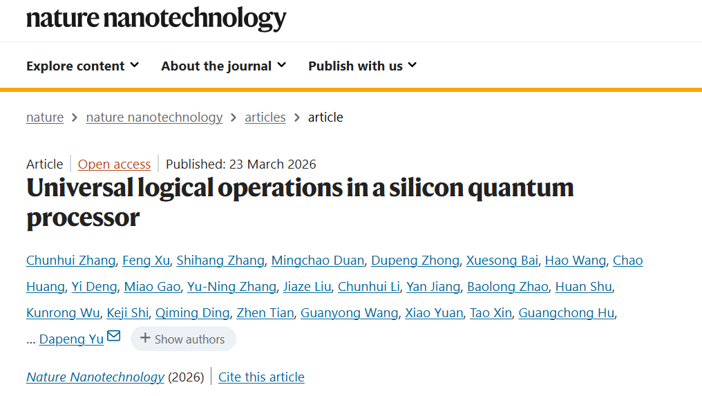 深圳国际量子研究院等演示硅量子处理器中的通用逻辑操作