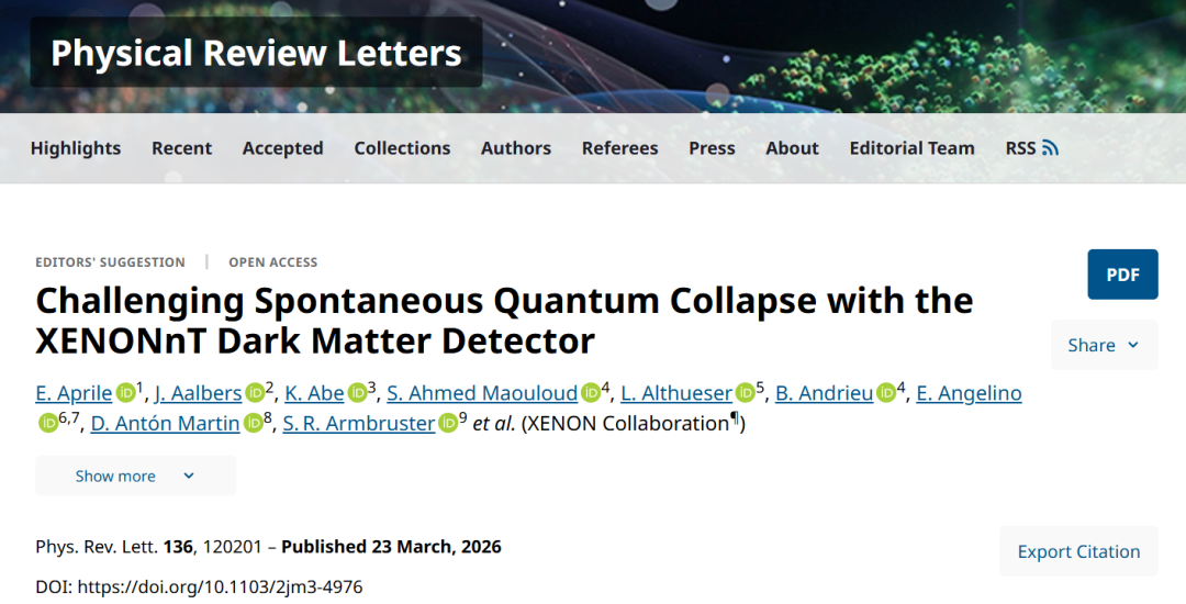 美国哥伦比亚大学等利用XENONnT暗物质探测器对自发量子坍缩的检验