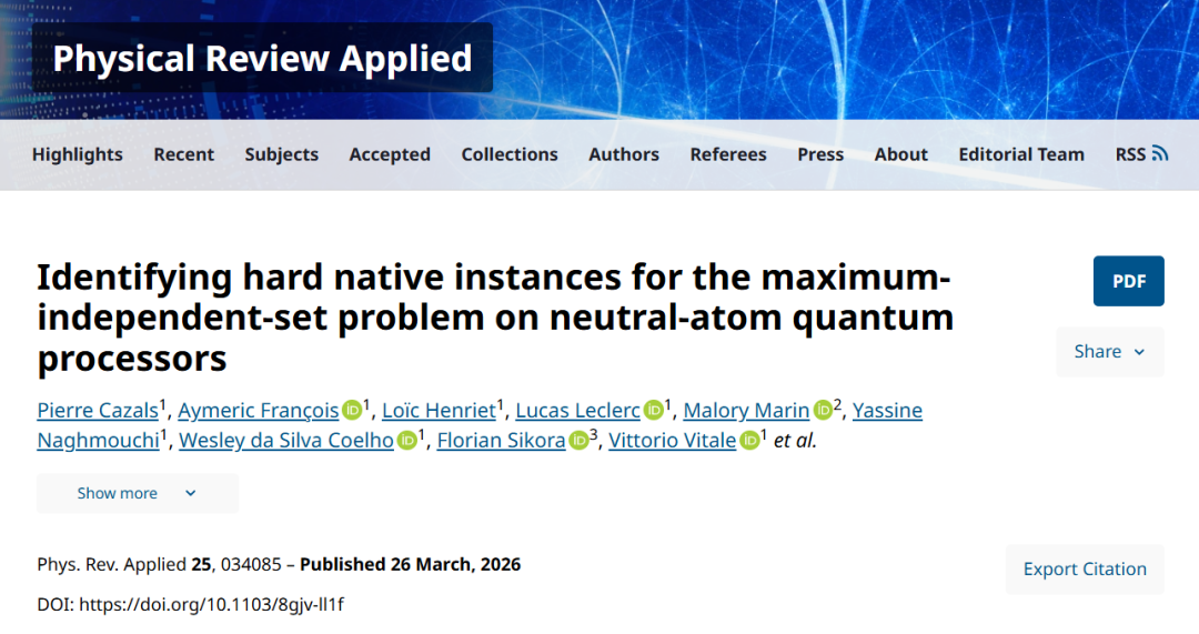 Pasqal等报告中性原子量子处理器在解决硬实例问题上的最新进展