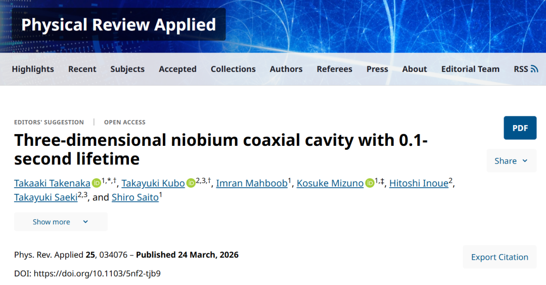 日本NTT与KEK的研究团队展示了一种经过中温退火处理的三维铌(Nb)四分之一波长同轴谐振腔。该谐振腔在极低温(低于20mK)及单光子能量水平下,实现了内部品质因子,对应光子寿命约为90毫秒(接近标题所述的0.1秒量级)。更具应用价值的是,该工艺形成的低损耗铌氧化物表面非常稳定,即便经历多次降温循环和空气暴露,性能仍保持不变。这项表面处理技术不仅能显著延长三维谐振腔的相干时间,未来更有望应用于二维超导电路,助力高性能超导量子比特的开发。研究成果于3月24日发表于《Physical Review Applied》(物理评论应用)。