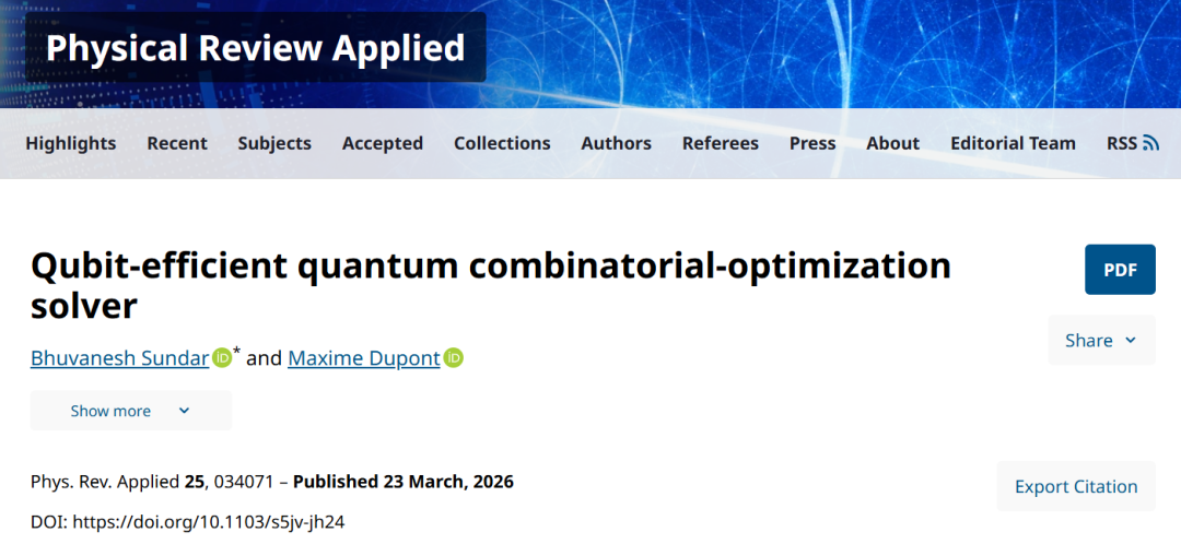 针对当前量子硬件比特数受限、难以应对大规模经典优化问题的瓶颈,本研究提出了一种“比特高效”的新型变分量子算法。该算法突破了传统“一个变量对应一个量子比特”的刚性映射模式,通过将候选解比特串映射到更少量子比特的纠缠波函数中,实现了对QAOA算法的泛化升级。在解决Sherrington-Kirkpatrick自旋玻璃模型等复杂组合优化问题时,该方案不仅展现了参数集中的优越性质,还提供了性能保证,为在近中期及未来容错量子设备上处理大规模实际问题开辟了新路径。研究成果于3月23日发表于《Physical Review Applied》(物理评论应用)。