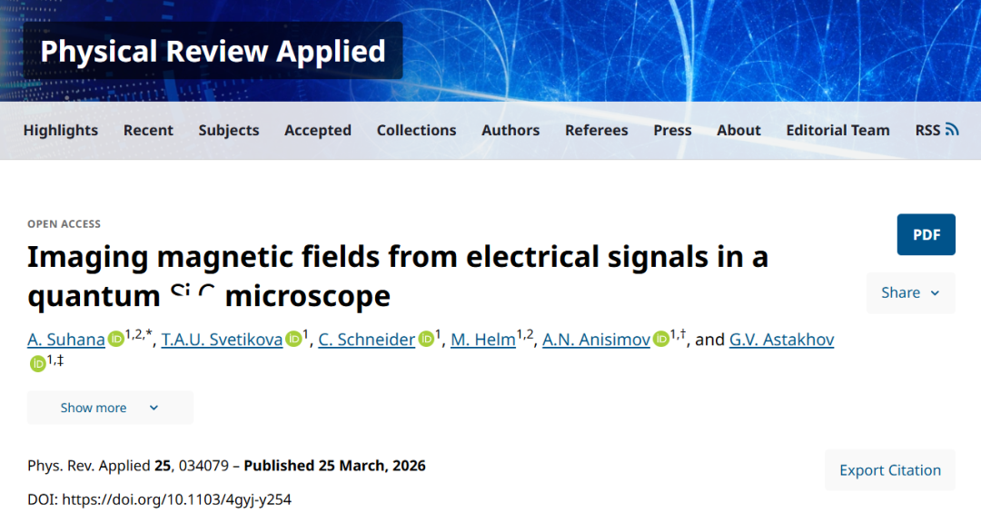 德国德累斯顿工业大学等实现量子碳化硅显微镜中电信号的磁场成像
