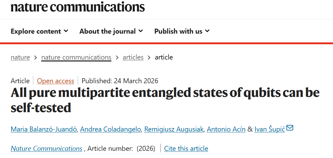 西班牙巴塞罗那科学技术学院等证明所有纯多体量子比特纠缠态均可自测试
