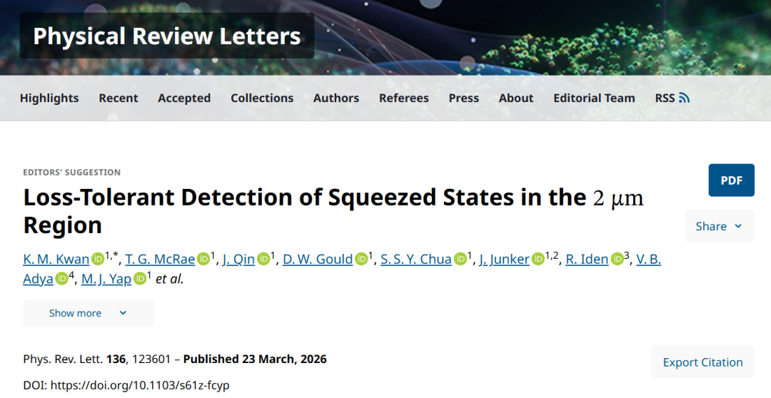 澳大利亚国立大学等研究2μm波段压缩态的容错探测