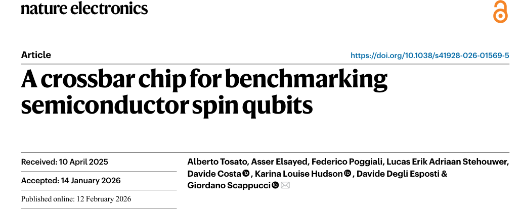 代尔夫特理工大学的Giordano Scappucci 团队在2026年发布的QARPET是另一个里程碑。这是一个基于23x23阵列的交叉栅极芯片,能够在单次冷却中测试多达1058个空穴自旋比特。