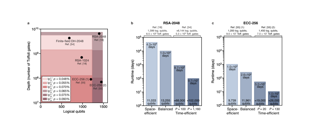图:RSA-2048与ECC-256密码破解资源及运行时间估算