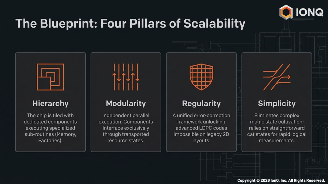 4月21日,量子计算上市公司 IonQ 研究团队正式发布了一份名为“ Walking Cat ”的容错量子计算机完整工程蓝图,详细规定了从编译器、逻辑纠错到量子芯片微架构的所有细节。
